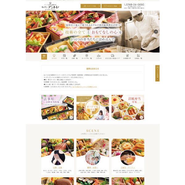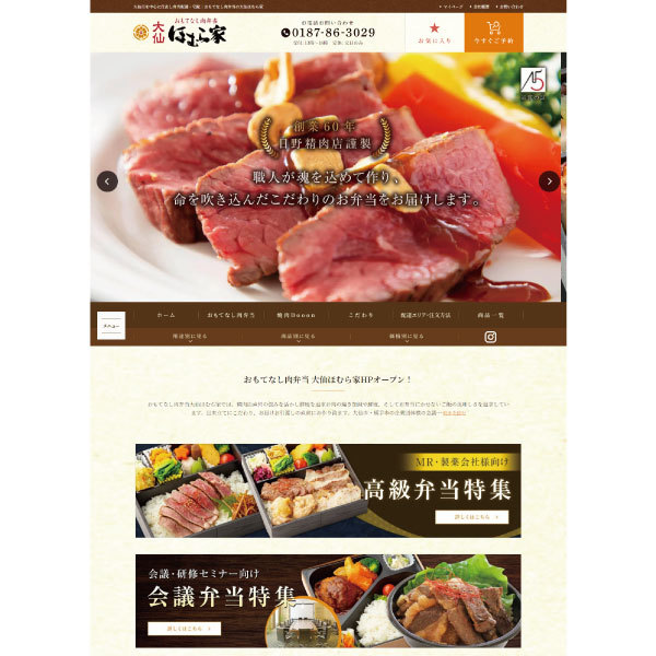 お弁当受注に必要なコンテンツを、お客様の注文導線に沿って配置し、電話問い合わせでの注文相談や確認事項を最小限に抑えます。また、WEBネット注文への効果的な誘導で電話対応が減るだけでなく24時間受付でも安心の注文条件設定で注文ロスを削減し、利便性が高く使い勝手の良いホームページとして、新規顧客注文増だけでなくリピート注文増にも貢献します。